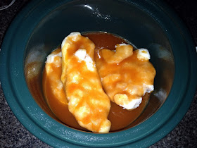 4. While the corn muffin mixture is baking prepare your chicken/ bean mixture. There are several options here. You can bake a chicken breast, shred it & mix it with the taco seasoning & black beans. You could use a store bought rotisserie chicken, shred it, then mix it with the taco seasoning & black beans. You could use left over chicken. Or you can do what I did, ahead of time. I put a large, boneless, skinless chicken breast in the crock pot with a half of a thinly sliced onion, 1/4 cup of chicken broth (or water) & the rest of the taco seasoning. I cooked it on high for 3-4 hrs, until it easily shredded easily with a fork. Then I mixed in the black beans.